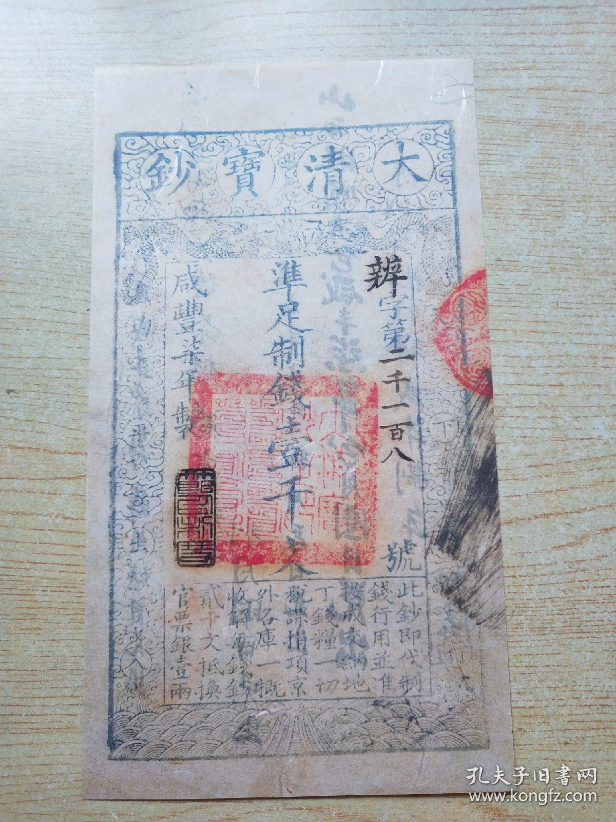 稀有少见的大清宝钞,东西是仿制品,主要在于背面的文字